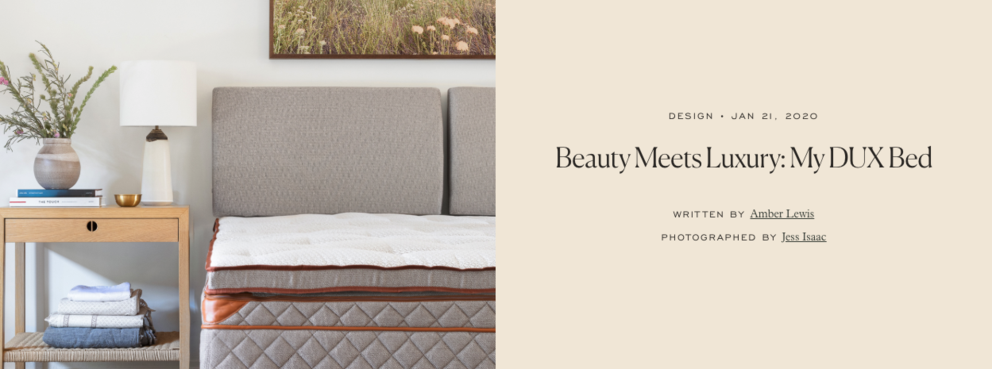 Fatmirësisht për mua (dhe për ju tani!!) Hasa në markën suedeze°DUX dhe u dashurova shumë me°shtratin e tyre DUX. DUX është një markë ikonike në Suedi që i vënë produktet e tyre në dispozicion këtu përmes dyqaneve°DUXIANA°në SHBA dhe "u shita" menjëherë pasi pashë shtratin e tyre personalisht.