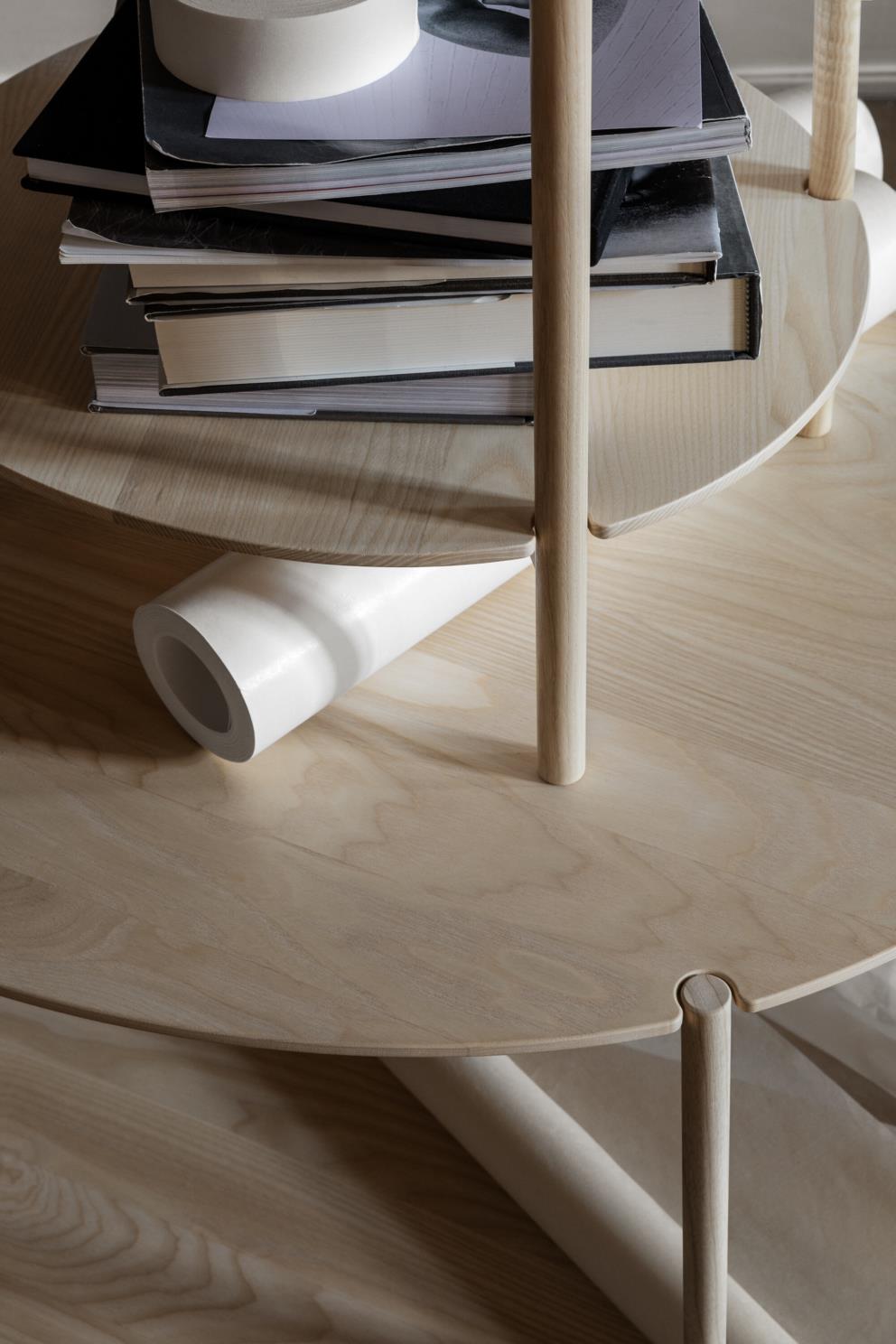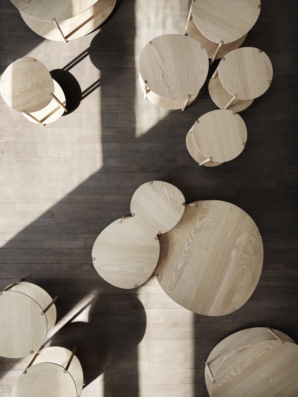Personaliteti i Lunarias mbështetet në përdorimin e drurit të butë e të ngrohtë dhe formave delikate e të parregullta të pjesës së sipërme të tavolinës së rrumbullakët.