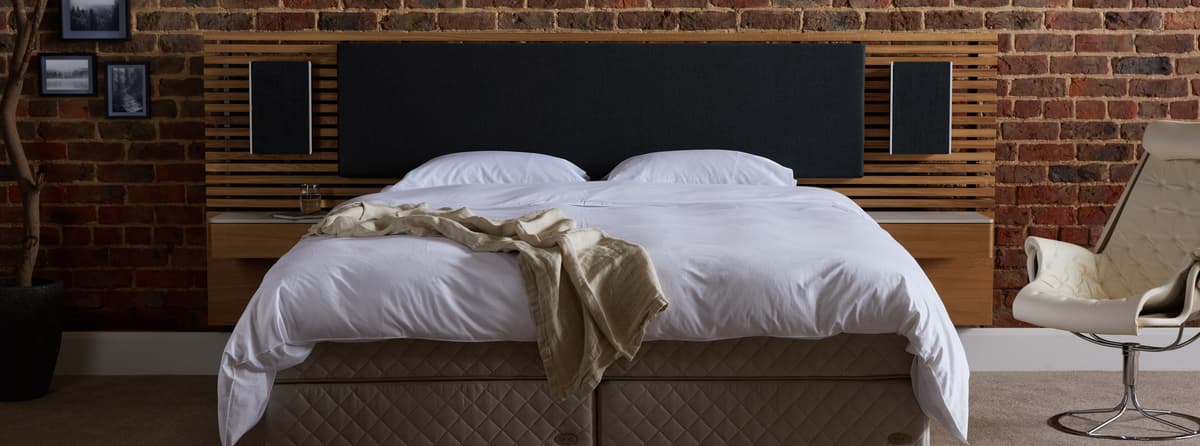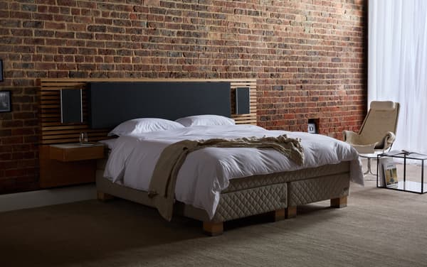 Kjo kokë shtrati përfaqëson një bashkëpunim mes dy liderëve të industrisë. Dizajni minimalist sjell teknologjinë novatore të audios me mbushje mbështetëse për rehati shtesë.