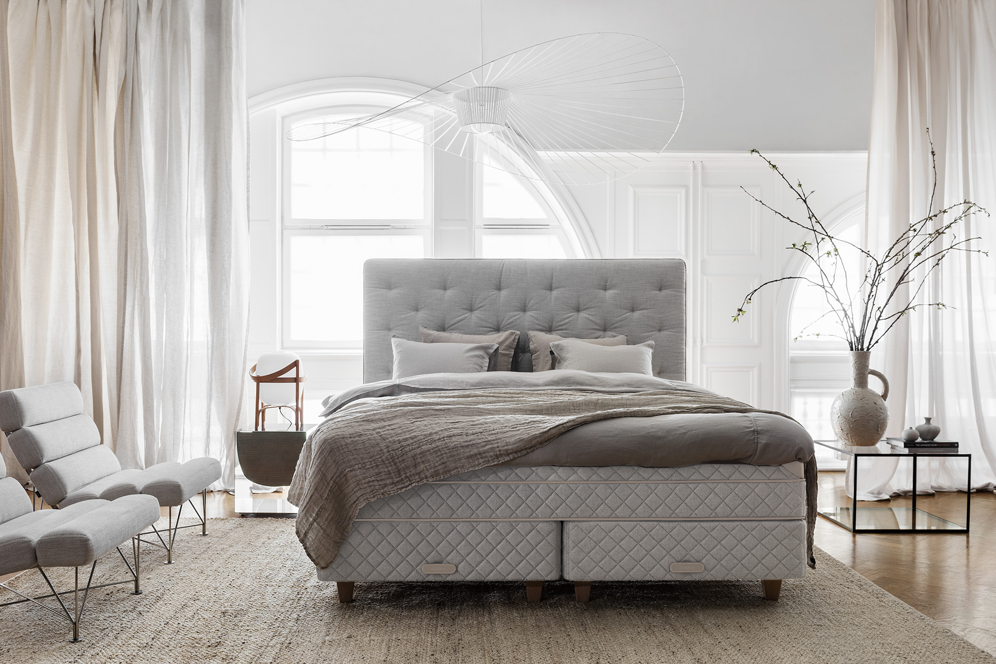 Për një ndjesi luksoze, kjo jep lartësi dhe butësi, shtrati mund të bëhet pjesa kryesore e zbukurimit.