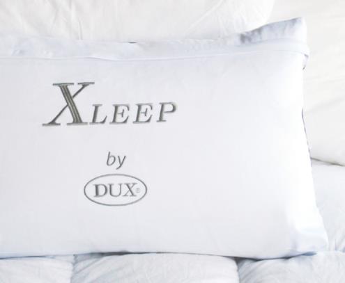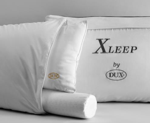 DUX Xleep është një tjetër risi e DUX. Pjesa qendrore përmban një sistem sustash aktive mikro për të garantuar që qafa dhe koka të qëndrojnë në një bosht me shpinën. Sistemi i sustave i mundëson jastëkut me pupla të ruajë formën origjinale dhe elasticitetin e tij vit pas viti dhe për të mbetur ekstra i freskët dhe i rehatshëm. Pjesa qendrore është e mbështjellë me mbulesë të lëvizshme puplash që mund të lahet dhe ndërrohet lehtë, gjë që ndihmon veçanërisht njerëzit me alergji. Jastëku DUX Xleep është një përvojë që e rekomandojmë fort.