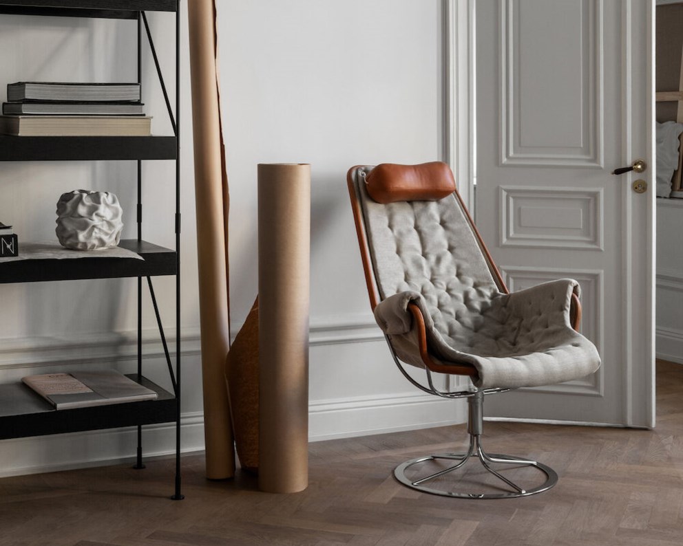 Karrigia e thjeshtë ikonike e dizajnuar nga Bruno Mathsson. Karrigia Jetson pasqyron fiksimin e tij me rehatinë si dhe qasjen klasike të dizajnit modern suedez. Vjen me një ndenjëse në formë vezore dhe me një pjesë të pasme të lartë ergonomike me mbështetëse koke. Bazë rrotulluese kromi me mekanizën unik me vetë-kthim.