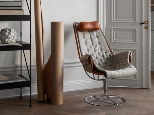 Karrigia e thjeshtë emblematike e disenjuar nga Bruno Mathsson. Karrigia Jetson pasqyron fiksimin e tij me rehatinë si dhe qasjen klasike të dizajnit modern suedez. Vjen me një ndenjëse në formë vezore dhe me një pjesë të pasme të lartë ergonomike me mbështetëse koke. Bazë rrotulluese kromi me mekanizën unik me vetë-kthim.