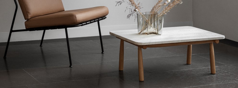 Tavolina e ulët me materiale ekskluzive kombinohet në mënyrë të përkryer me drurin Domus.
