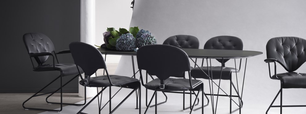 Tavolinë ovale ngrënieje që nxit bisedën dhe kontaktin sy më sy me të gjithë të ftuarit. Vjen edhe në dy versione të tjera, tavolinë ngrënieje me dy pjesë të sipërme që hapen dhe një tavolinë café më e vogël.